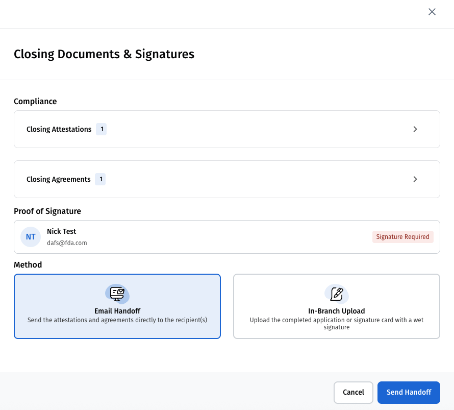 The "Closing Document Signatures" checklist task is now supported in Console. Console users have the ability to open this checklist task to view the status of required signatures, initiate handoffs, and complete In-Branch closing. |